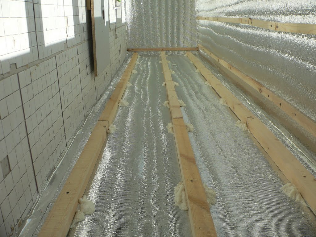Данный пункт очень важен, тем более на балконе. В качестве основного отделочного материала для утепления пола можете использовать такие материалы, как: пенопласт, керамзит, пенофон, пеноплекс или минеральную вату.