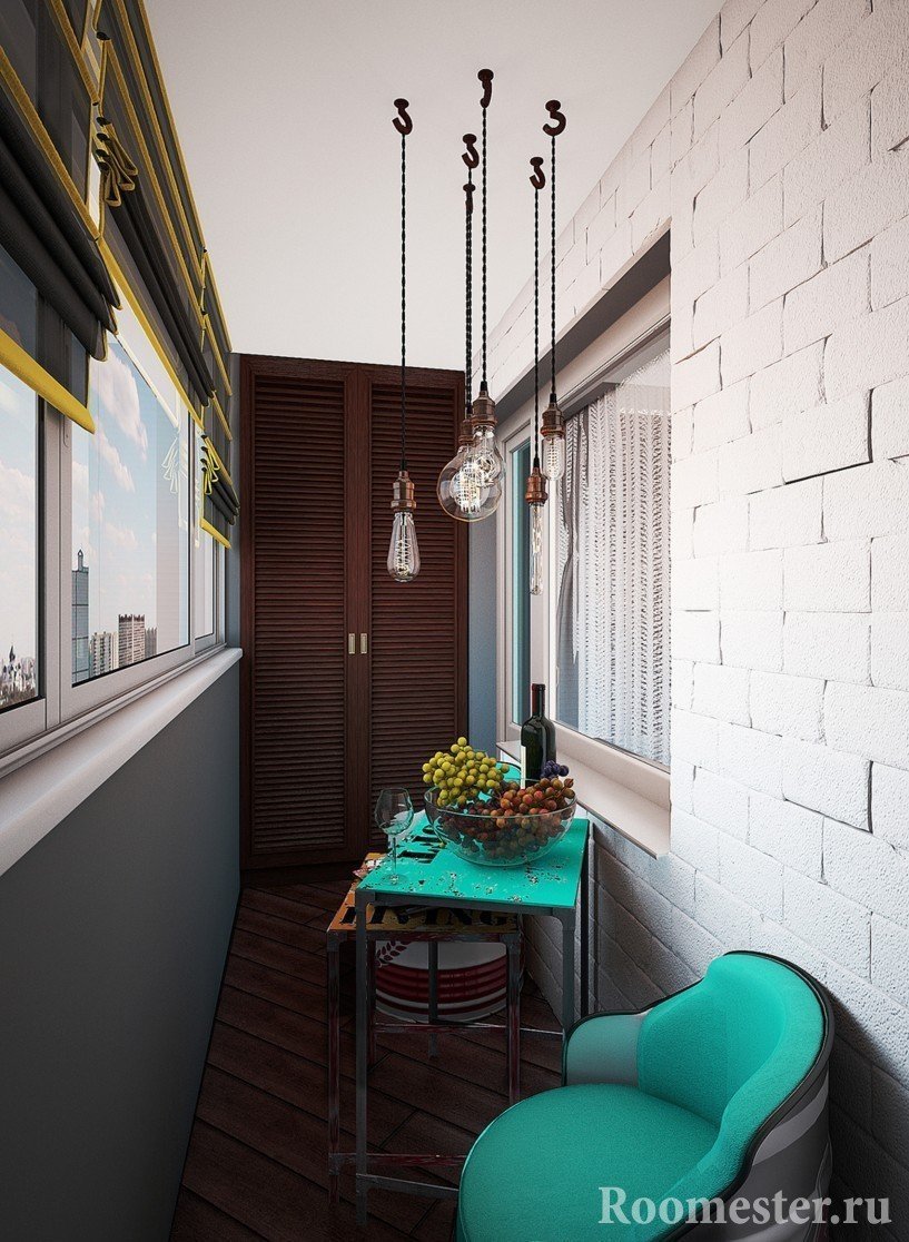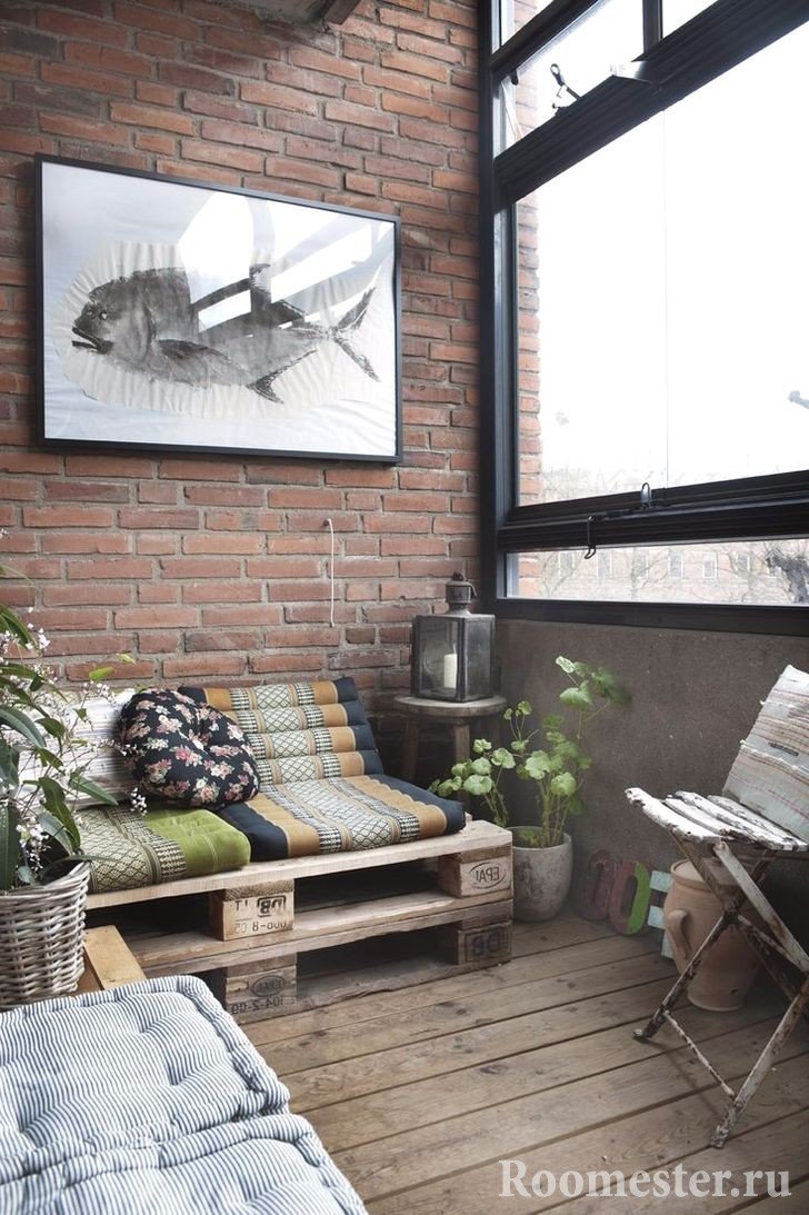 Этот стиль очень интересно смотрится на лоджии, но придется по вкусу далеко не каждому. Индустриальные черты интерьера, кирпичная кладка являются неотъемлемой чертой лофта, как, впрочем, комбинирование старого и нового. На фоне простой отделки выделяются яркие детали и нестандартные аксессуары.