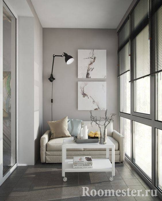 Идеи дизайна в минималистском стиле – одна из современных тенденций в интерьере. Они идеально подходят для небольших лоджий размером 5 или 6 метров. Компактная мебель, небольшие декорации, простая планировка и четкие линии создают визуально большое пространство и иллюзию более просторного помещения.