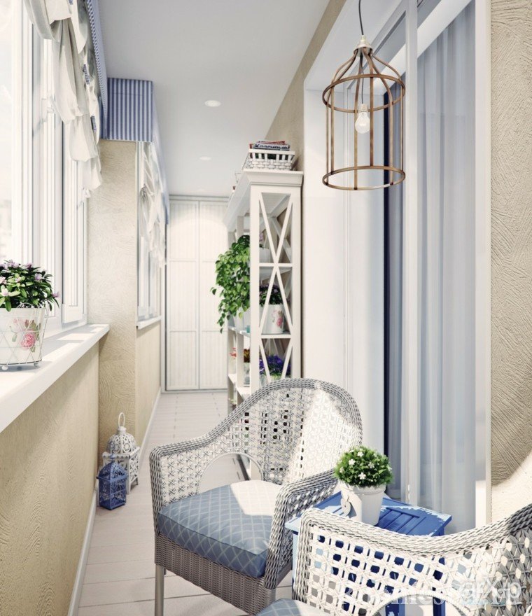 Прованс очень оригинальный стиль, в котором можете использовать любую старинную мебель, окрашенную в белый цвет, с неким прованским колоритом. Такой вариант будет лишь украшать Вашу лоджию. Красиво и оригинально будут смотреться металлический столик с белыми стульями в комплекте. А в завершение оформления прованса можно повесить кованую люстру, поставить горшки с цветами и расположить на диванчике разные подушки.