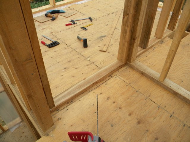 Поверх утеплителя укладывают пароизоляционную пленку и только после этого застилают пол осб-плитами. Помимо плит можно использовать фанеру или доску.