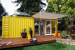 Несмотря на выработанный годами стереотип, что дома из контейнеров – это обычные строительные бытовки или примитивные конструкции для временного жилья на даче, на практике эти здания представляют современные сооружения, поражающие своим внешним, вполне презентабельным видом и создаваемым комфортом и уютом. Применение данных конструкций для строительства жилья в странах Европы и Америки позволяет на практике убедиться, насколько хороши бывают сооружения, построенные качественно и по хорошим проектам. дом из двух контейнеров, обшитый деревом Идея столь необычного проекта дома из контейнеров не имеет автора. Неудивительно. Ничего нового в этом нет. Важен больше творческий подход к сооружениям, дизайн и примененные отделочные работы. Первым успешно использовал контейнера в качестве строительных блоков Адам Калкин. Его потрясающий современный и красивый дом удивляет внешним видом, за которым с трудом прослеживается примитивная конструкция. более простой одноэтажный вариант дома из контенера Получив существенную экономию за счет применения бывшего в употреблении морского контейнера, талантливому архитектору удалось создать полноценный монолитный снаружи дом, внутри состоящий из множества помещений. Для здания потребовалось три блока. Такой архитектурный прием, как применение одинаковых панорамных окон, объединил контейнера в единую конструкцию. благодаря разному сочетанию цветов и конструкции дом из контейнера – прекрасное место для жизни и отдыха Идея постройки здания из блоков не нова. Подобные конструкции строит малыш из кубиков. Именно так и выглядит рассматриваемое жилище: Для жилья используются как железнодорожные, так и морские контейнеры из стали. Высота помещения, равная ширине, невелика, чуть более 2,3 м, для американских домов это не считается низким потолком. Длина может быть 6 и 12 метров, в зависимости от контейнера. небольшой домик с цветочной терасой на крыше Особенность таких домов в гофрированной поверхности контейнера, отличающего высокими прочностными характеристиками. Это позволяет без потери прочности и при отсутствии деформаций вырезать большие панорамные окна, громадных размеров двери. Строительство контейнерных домов уверенно продолжается. По таким проектам уже построены необычные гостиницы, популярные кафе. Контейнера были применены при строительстве ресторанов и офисов. Технология востребована при возведении гаражей, построек в условиях крайнего севера и Антарктиды. Важным считается проявить фантазию и придать зданию необычный оригинальный вид. дома из контенров выигрывают по срокам возведения по сравнению с традиционным строительством Конструкции из контейнеров становятся все более востребованными и применяются не только в качестве временного жилья, но и служат для постоянного проживания. Причины популярности вполне объяснимы: с помощью обычных контейнеров можно получить оригинальный дизайн дома Но не все так просто с подобными строительными конструкциями. Имеющиеся недостатки не позволяют жилью лидировать среди построек. Среди недостатков отметим наиболее существенные: двухэтажный дом из контейнеров с большим панорамным окном Цель здания и его назначение определяются исходя из планировки. Имеется достаточное количество типовых проектов, но особенность таког