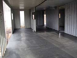 После укладки греющего кабеля во всем доме из контейнеров заливается стяжка. Стяжка не сплошная - через три метра она разделена промежутками на отдельные части, чтобы избежать трещин при расширенни стяжки при температурных колебаниях.