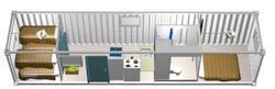 Вариант планировки дома для одного- двух человек из 40 футового контейнера.