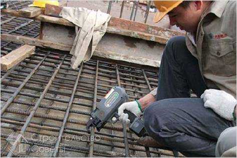 Любой дом или хозяйственная постройка требует предварительного проектирования и изготовления достаточно прочного фундамента. Изготовление этого конструктивного элемента невозможно без использования арматуры. Она дает возможность значительно усилить железобетонную конструкцию, благодаря тому, что принимает на себя нагрузку от растягивающих напряжений. Арматурный каркас применяют не только для упрочнения фундамента, но и в качестве связующего звена между отдельными элементами фундамента. Выбирать этот материал необходимо внимательно. Какая арматура нужна для фундамента, и на что необходимо обратить внимание при ее выборе? Лучше всего для создания прочного каркаса фундамента подходит стеклопластиковая арматура. Такой материал обладает несколькими положительными качествами, которые делают его наиболее подходящим при постройке фундаментов: Кроме того, для постройки железобетонного фундамента хорошо подходит стальная арматура, выполненная на периодическом или гладком профиле. Периодический профиль — это стержень, на поверхности которого нанесено рифление, являющееся выступами металла расположенными под углом к оси. Основное предназначение рифления – увеличить сцепление бетона и арматуры. Выбирая, какая арматура нужна для фундамента, стоит задуматься о ее надежности. Это качество определяется свойствами используемого материала. Желательно учитывать и шаг поперечного рифления (расстояние их центрами выступов): чем меньше расстояние, тем лучше сцепление бетона с арматурой. Но основным качеством арматуры считают ее поперечный диаметр. Для постройки фундамента для бани или небольшого здания хорошо подходят стержни диаметром в пределах 10 — 12 мм. Кроме того, для фундамента можно использовать арматурную сетку, из сплющенной круглой стали. Конструкция с таким элементом обладает повышенной прочностью, по сравнению с обычной арматурой, соединяемой вместе с помощью сварочного аппарата. В последнее время, благодаря новейшим разработкам, появился способ, который дает возможность изготавливать в домашних условиях сеточный каркас. Его можно изготовить, используя специальный пистолет, который может соединить прутья арматуры отожженной металлической проволокой 1 — 3 мм диаметром. Применение таких агрегатов дает возможность значительно снизить срок выполнения работы (на каждое соединение тратится до 2 секунд), и, кроме того, увеличить их качество – перекос или деформация каркаса в этом случае невозможны благодаря стабильному усилию затяжки проволоки. Кроме того, как положительный фактор применения таких пистолетов можно назвать то, что с ним работать может и любитель. Все что необходимо сделать, — это закрепить насадку и после этого нажать на кнопку. При креплении арматуры также необходимо соблюдать правила, которые дают возможность получить прочный арматурный каркас. Внешний край каркаса должен немного выступать за опалубку. В результате создается необходимая толщина (минимально 50 мм). Также необходимо предусмотреть пространство между дном траншеи и каркасом. Для выполнения этой работы чаще всего применяют специальные пластиковые насадки. Если нельзя использовать эти элементы, то подкладывают под каркас деревянный брус или кирпичи, а после этого крепят к грунту проволочными штырями, которые не позволяю