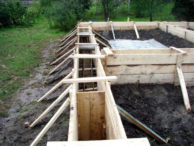 От прочности фундамента напрямую зависит надежность и долговечность всего строения. Планируя подобный «нулевой» цикл строительных работ, необходимо учитывать множество факторов. Особенно важное значение приобретает информация, при какой температуре можно заливать фундамент. При какой температуре можно заливать фундамент Если не учесть погодные условия во время процесса заливки фундамента, качество и марку раствора, применение добавок, которые способны понизить температурную кристаллизацию воды, мероприятия по поддержанию необходимых режимов для созревания бетона, то работа может быть проведена напрасно, и возведенная основа здания начнет крошиться сразу же после затвердевания. Некоторые владельцы загородных участков торопятся возводить на своей новообретенной территории капитальные сооружения, не обращая внимания на время года. В некоторых, довольно редких случаях это бывает оправдано, однако, сложностей при таком подходе немало, и они начинаются уже на стадии подготовительных работ. Содержание статьи Вне зависимости от времени года подготовительные мероприятия будут включать целый перечень обязательных работ: Опалубка под ленточный фундамент Гидроизоляционная пленка на морозе может потерять пластичность и стать ломкой Несъемная опалубка из экструдированного пенополистирола Армирование фундаментной ленты Тем не менее, как уже упоминалось, бывают ситуации, когда, в силу тех или иных причин, возведение фундамента в зимний сезон является оправданным: Когда все подготовительные процессы будут закончены, можно рассчитывать густоту и состав раствора, параметры которого будут зависеть от температуры, при которой он будет заливаться в опалубку. Один из видов модифицирующих добавок в бетонный расвор Благодаря тому, что пластификаторы положительно влияют на морозостойкость раствора, их очень часто добавляют и в тех случаях, когда приходится заливать фундамент при отрицательных температурах воздуха. Оптимальные условия для заливки бетона — температура от 15 до 25 градусов Каковы общие рекомендации по заливке бетонного фундамента: Фундамент следует заливать за один прием Если обстоятельства сложились таким образом, что приходится проводить работы в условиях критических температур, нужно знать, что процессы схватывания и затвердевания будут увеличены в несколько раз. Поэтому заливка фундамента в зимний период проводится только при крайней необходимости. Ниже приведена таблица, из которой наглядно видно, как влияет температура окружающей среды на время созревания и полного набора необходимой прочности обычного бетонного раствора марки М200 – М300, изготовленного на основе портландцемента М-400 или М-500. Примечания: — процентные показатели рассчитаны в соотношении к эталонной прочности созревшего бетона данной марки. — под значками (٭) указаны так называемые условные нормативно-безопасные сроки проведения распалубки залитой бетонной конструкции. — значки (٭٭) – это сроки созревания для начала полностью безопасных дальнейших работ. Чтобы обеспечить необходимый минимально допустимый температурный режим используют несколько технологий: Однако, такие методы оправданы только при масштабном промышленном строительстве – подобные технологии являются весьма опасными и требующими высочайшей квалифика