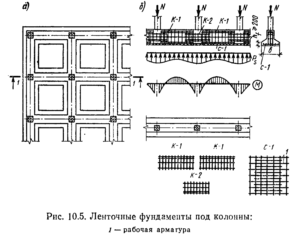 Рис. 12.10. Ленточные монолитные фундаменты под колоннами