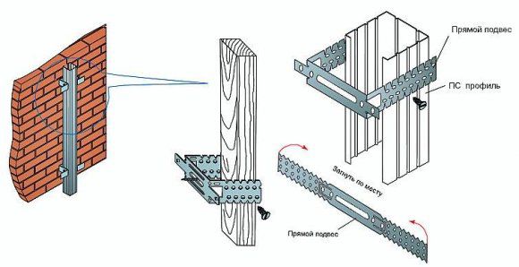 Каркас может быть однослойным или двухслойным. Во втором случае перпендикулярно направляющим монтируют еще один слой из оцинкованных профилей. В качестве крепежных элементов подойдут саморезы по металлу. В остальном технология неизменна.