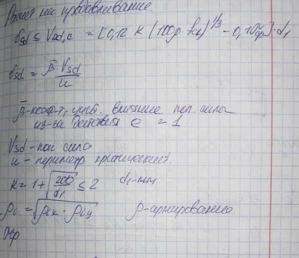 Определим ширину раскрытия трещин acrc от непродолжительного действия всех нагрузок при моменте М0: s = Rs M0 / Mpr = 365 • 0,643/0,64 = 367 МПа; acrc = 1,0 1,0 1,0 367 20(3,5 100 0,0015) = 0,296 мм. Найдем интерполяционное значение ширины раскрытия трещин от непродолжительного действия всех нагрузок при Мr2n = 0,509 MНм (черт. 34) : acrc,cr = мм , тогда ширина продолжительного раскрытия трещин от действия длительных нагрузок определяется из условия acrc,dl = , где l = 2,72 l = 1,58 ; acrc,dl = 0,11 мм acrc,dl = 0,2 мм , то есть при рекомендуемом СНиП 2.03.01-84 учете специфической работы малоармированных ( < 0,008) элементов ширина раскрытия трещин существенно уменьшается. Принимаем арматуру подошвы фундамента Asl класса A-III: 1414 А-III (21,55 см2). Аналогично выполняется проверка ширины раскрытия трещин по сечению 4-4. Определим действующие усилия в сечении по низу подколонника в уровне плитной части (сечение 1-1, черт. 20) по табл. 12. Высота подколонника hcf = 2,4 0,9 = 1,5 м. Таблица 12 № комбинаций расчетных сочетаний N1, МН Mx + Qx hcf , МНм 1 2,4 0,096 + 0,036 1,5 = 0,150 2 0,96 0,132 + 0,060 1,5 = 0,222 3 2,1 0,336 + 0,072 1,5 = 0,444 Принимаем армирование подколонника стержнями 12А-III с шагом 200 по периметру (5 12А-III, Аs = 5,65 см2). Так как hcf/lcf = 1,5 : 0,9 = 1,67 < 6, то в соответствии с п. 2.39 коэффициент принимается равным 1,0 и учет продольного изгиба не производится. По комбинации 3 проверим сечение при внецентренном сжатии. Определяем высоту сжатой зоны из формулы (37) СНиП 2.03.01-84: х = = 0,38 м , сжатую арматуру в соответствии с п. 2.41 не учитываем. = x/h0= 0,38 / 0,85 = 0,45, здесь h0 — рабочая высота сечения; по формуле (25) СНиП 2.03.01-84 определяем значение R R = / [ 1 + sR (1 / 1,1) / sc,u] ; = 0,008Rb ; = 0,85 ; Rb = 7,5 0,9 = 6,75 МПа ; x(= 0,85 0,008 6.75 = 0,796 . Так как sp и sp равны нулю (предварительное натяжение арматуры отсутствует), то sR = Rs sp = 365 МПа; Ssc,u = 500 МПа при b2 1,0. Тогда R = 0,796/[ 1+365 (1 0,796/1,1) /500] = 0,66 > = 0,45. Следовательно, расчет должен быть произведен по формуле (36) СНиП 2.03.01-84 без учета сжатой арматуры (п. 2.41) : NeRbbx (h0 0,5 x) . Случайный начальный эксцентриситет esl = ecf/30 = 90/30 = 3 см; е = еsl + e0 +0,5 (h0 - a) = 0,03 + 0,444/2,1 + 0,5 (0,85 0,05) = 0,64 м; Ne = 2,1 0,64 = 1,34 МНм . Правая часть в формуле (36) СНиП 2.03.01-84 равна 6,75 • 0,9 • 0,38 x (0,85 0,5 • 0,38) = 1,52 МНм; Ne = 1,34 МНм < 1,52 МНм, то есть прямоугольное сечение подколонника удовлетворяет условию прочности. Подбор арматуры коробчатого сечения подколонника производим как для изгибаемого элемента на условный изгибающий момент Мk, определяемый по формулам (58) или (59). Для комбинации 3: ex = 0,444/2,1 = 0,187 м; l/6 = 0,4/6 = 0,067 м; 0,5lс= 0,2 м. Поскольку 0,067 < еx = 0,187 < 0,2, то момент Мk определяется по формуле (59): Mkx =Мх + Qx dp- 0,7Nex =0,336 + 0,072 0,8 0,72,10,187 = = 0,12 MHм; A0 = Mkx / b2 Rb b ho2 = 0,12/0,9 • 7,5 • 0,9 • 0,852 = 0,027, = 0,986; As = As = Mkx/Rs h0 = 0,12 • 104/365 • 0,986 • 0,85 = 3,82 см2 < 5,65 см2, то есть принятое сечение арматуры 512 А-III достаточно по прочности. studfiles.net Отдельно стоящие фундаменты (см.рис.Ф.9.12,л,м) устраивают под колонны из монолитного железобетона, включая плитную часть ступенчатой формы и подколонник. Монолитные фундаменты выполняются как одно целое с колоннами. При этом арматура колонн соединяется с арматурой фундамента (рис.Ф.9.19). Сопряжение сборных колонн с фундаментом осуществляется с помощью стакана, а металлических колонн при помощи анкерных болтов. Рис.Ф.9.19. Соединение колонн с фундаментом: а - монолитное; б - со стальной колонной; 1 - арматура; 2 - анкерные болты Высота ступеней принимается кратной 150 мм. Первая ступень должна быть не менее 300 мм. Ширина ступеней определяется из условия продавливания. В песчаных грунтах под монолитными фунд