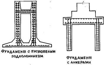 Оголовки оснащены закладными болтами для крепления основания колонны. Железобетонные двухветвевые подколонники при жестком сопряжении с оголовком обеспечивают передачу нагрузок от стальной колонны на стойку рамы. Такой тип используется для зданий без подвальных углублений.