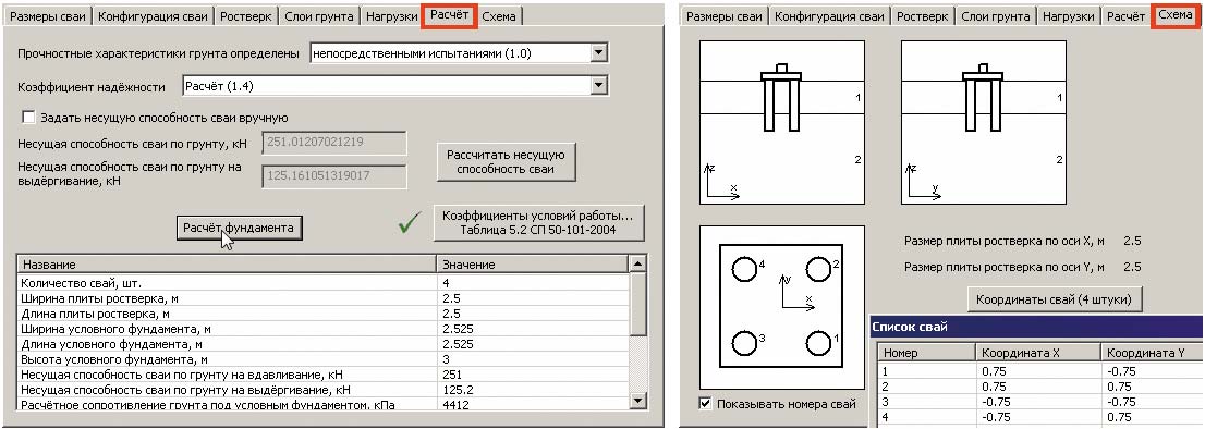 Чтобы сопоставить допустимые нагрузки на свайный фундамент и грунт необходимо выполнить следующие расчеты: