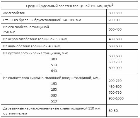 При расчетах учитывайте, что приведенные выше данные взяты на основе стен в 0.15 м. Имея точную ширину собственных стен не составит труда узнать их вес.