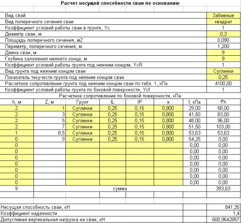 Расчетная нагрузка на сваю и количество опор. Свайные фундаменты расчет нагрузки