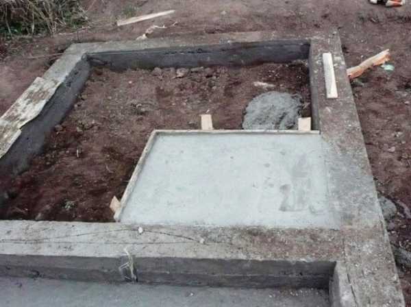котлован, вырытый на 70 см ниже линии промерзания почвы в зимний период. Для исключения влияния на фундамент под кирпичную печь подвижек грунта, ширина котлована у его основания делается примерно на 10 см шире с двух сторон.Бутобетонный фундамент