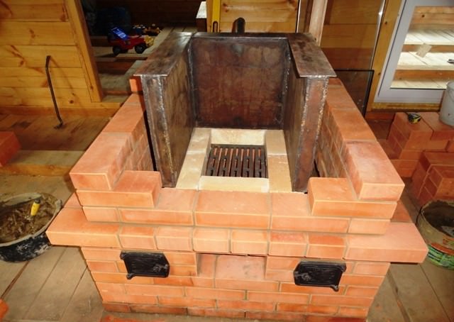 выбор места, возведение фундамента, технология кладки, установка плиты, дымохода, облицовка, советы