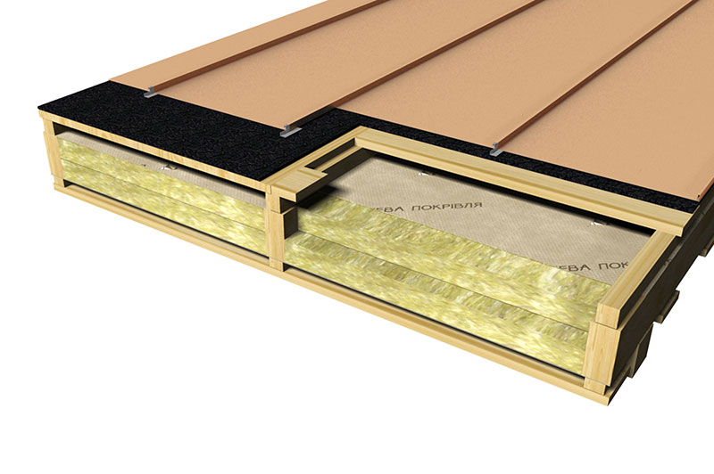 Кроме утеплителя, в состав пирога фальцевой кровли входят разные плёнки и мембраны, нужные для паро-, ветро-, гидроизоляции. Огромное значение при проектировании пирога фальцевой кровли имеет правильно организованная вентиляция. Главной ее задачей считается выведение излишков влаги. Для того чтоб влага выводилась через мембраны в вентиляцию, нужно во время монтажа оставить несколько легких зазоров. С этим прекрасно справляется деревянная обрешетка, без которой немыслима фальцевая кровля.