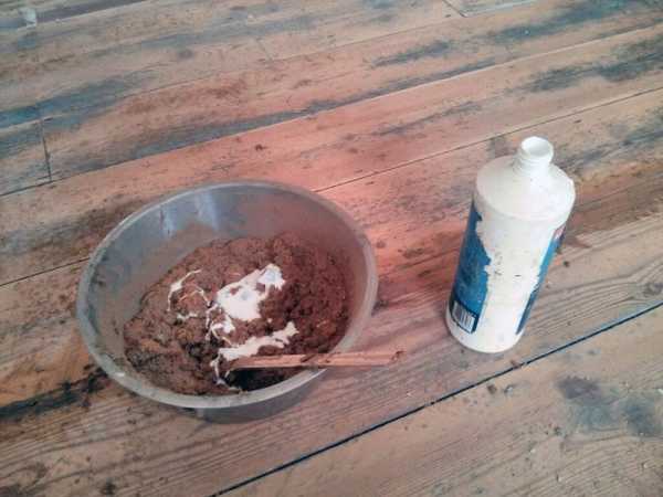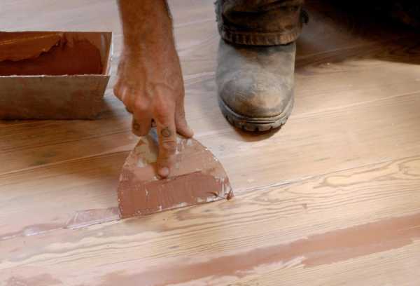 Расклиновка — достаточно скрупулёзный процесс, но это чуть ли не единственный метод локального ремонта скрипящего пола без срыва настила. После уплотнения досок необходимо заделать щели шпаклёвкой, в простейшем случае сгодится смесь ПВА и мелких опилок.