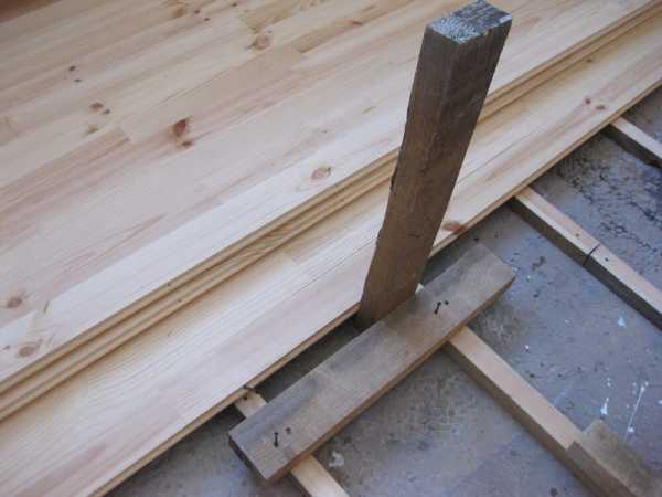 Чтобы избежать появления скрипа между половицами в дальнейшем, можно сплачивать доски на деревянных шкантах и плотно стягивать их автомобильным домкратом. Если нет нужды в скрытом креплении, рекомендуется использовать саморезы — по два на каждое место крепления к лагам.
