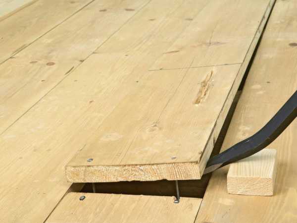 В ряде случаев ремонт может потребовать срыва чистового покрытия или дощатого настила под ним. Например, если скрипят доски чернового пола, поверх которых уложено чистовое — ламинат или линолеум. В таких случаях чистовой пол перебирают, выполняя требуемые манипуляции и избавляясь от скрипа, а затем настилают обратно.