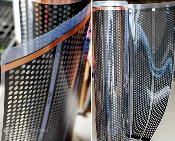 Что касается греющих элементов, то они надежно запаиваются в два слоя. Посредством медно-серебряных или просто медных проводников к ним подается электричество. Чтобы подключить ИК-пленку на основе углеродных элементов используется параллельная схема.