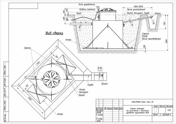 Все работы по установке станции и монтажу канализации должны проводиться по принципиальным монтажным схемам.