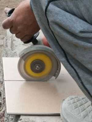 Работать с напольной керамикой нужно, используя электрические плиткорезы. Фигурные срезы лучше выполнять болгаркой. Болгаркой нужно делать вырезы в плитке под трубы, другие подобные элементы.Затирка межшовного пространства