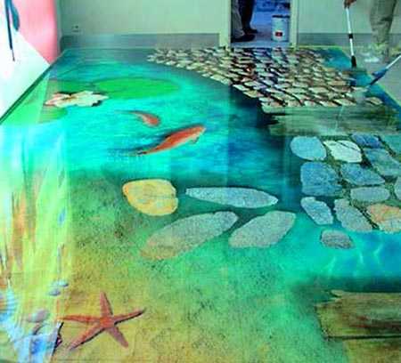 Технологии современного дизайна не стоят на месте. То, что несколько десятков лет назад не могли представить себе даже самые именитые художники, теперь становится доступным каждому. Речь идет о декоративных наливных полах с эффектом 3d.