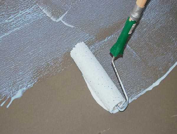 Наносим грунтовку в два слоя с помощью шпателя или плоской кисти. Между нанесением делаем перерыв, что указан на упаковке. Перед укладкой базового слоя должно пройти не менее 4 часов, но не более суток.