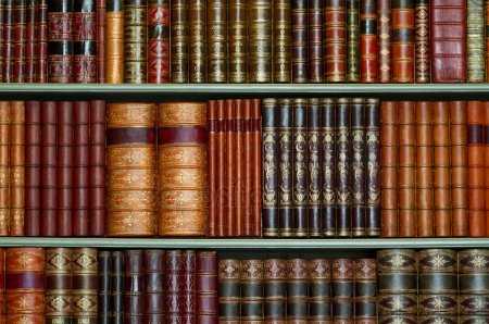 #51867748 - Bookshelf full of books background. Old library.