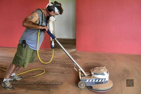 Если у вас в доме или квартире присутствует деревянный пол, то удостоверьтесь в его горизонтальности. Для этих целей можно использовать строительный уровень. На поверхности допускаются перепады в 2-3 мм. Если же неровности более этих параметров, то потребуется их убрать. Для этого нужно выровнять пол с помощью шлифовальной машинки. Помимо этого, потребуется проверить прочность деревянного пола. Если какие-то доски прогибаются под весом человека, то они заменяются на новые.