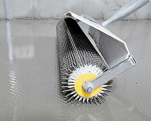 Задаваясь вопросом, как выровнять пол под ламинат, особое внимание следует уделить соединению отдельных порций раствора – чтобы свести на нет перепады в этих местах, также понадобится валик с шипами. Выкатывать залитую смесь необходимо по свежему, пока вода из раствора не успела впитаться в основание – именно для того, чтобы уменьшить впитываемость существующего пола и выполняется его грунтовка и предварительная заделка трещин.