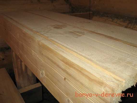 Для настила подбираем хорошие, крепкие досочки, без каких-либо дефектов. Везде пишут, что для полков годятся только определенные виды пород дерева и что предпочтение нужно отдать — липе, березе или осине, ну или на крайний случай сделать их из дуба или ольхи. И ни в коем случае нельзя из хвойных деревьев (сосна, ель, пихта).Но вот в нашей местности об этих рекомендациях если кто и слышал, то не придавал этому значения (вот темнота) и вовсю мастерили полоки из ели.Они же не знали, что такие породы обязательно должны выделять смолу и к ней можно прилипнуть.