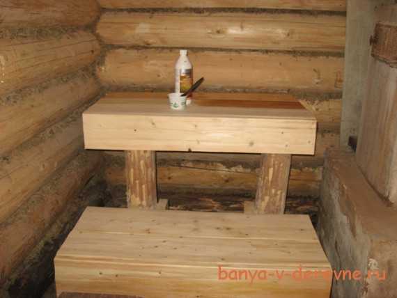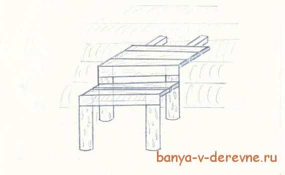 Рассмотрим простой вариант его устройства, который частенько можно встретить в обычной деревенской баньке. Он непритязателен по внешнему виду, может быть не так функционален, за то на его сооружение уходит немного материала, времени и не требуется особых навыков в строительном деле.