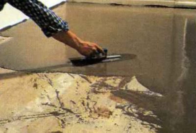 Для обеспечения гидроизоляции поверхность базового пола желательно покрыть полиэтиленом или обработать гидроизоляционной мастикой. Цементную основу нужно обработать грунтовкой, чтобы обеспечить максимальную адгезию и позволить укрепиться структурным связям верхнего слоя.