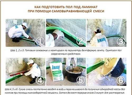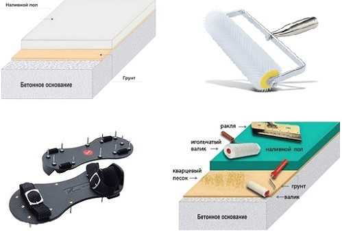 Технология заливки состоит из подготовительного этапа (чистка и грунтовка поверхности), приготовления рабочего раствора, заливки смеси, которую производят по маячкам.