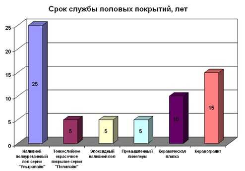 Однако, применение наливного пола как самовыравнивающегося покрытия будет оправдано, в случае невозможности удовлетворения требованиям финишного покрытия бетонной стяжки. Состав полимерных наливных полов зависит от типа используемого полимера: полиуретанового, эпоксидного или цементно-акрилового.