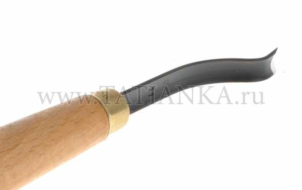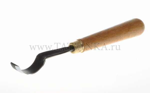 Полукруглые клюкарзы. У стамесок "Татьянка" поперечный профиль лезвия (если смотреть на стамеску спереди) повторяет профиль прямых полукруглых стамесок с таким же номером, что позволяет продолжать рез, выполненный прямой полукруглой стамеской, в глубину и труднодоступные места, сохраняя его геометрическую форму, образованную "закрытыми" краями лезвия, что важно для выполнения элементов резьбы по дереву в стиле "Татьянка", а также в других техниках.
