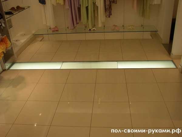 Такую интересную конструкцию, стеклянный пол, лучше устанавливать на пол, который крепится на лагах (горизонтально расположенные бревна, брусья или металлические балки, которые служат опорой для полов). Или же в помещениях, где можно сделать углубление в полу на 10–15 см без угрозы повреждения несущей конструкции перекрытия.