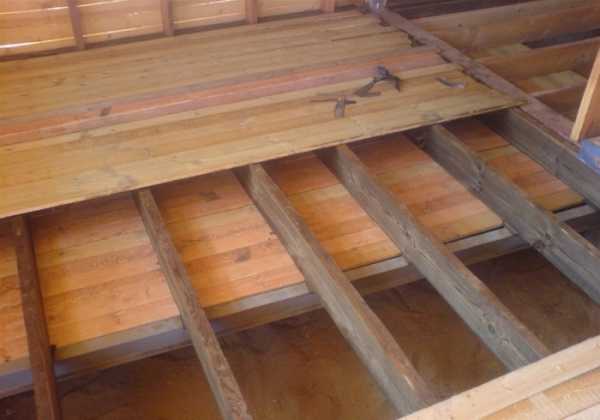 Как говорилось ранее, расстояние между лагами не должно превышать 60 сантиметров. Если данное требование соблюдено, можно смело начинать заниматься устройством внутренней части пола, которая будет держать на себе вес всей конструкции. После этого необходимо к лагам сверху прибить фанеру, листы ОСБ или доски.