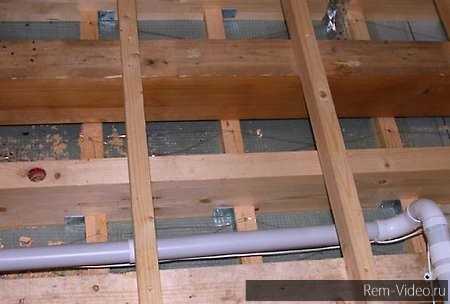 Двойные (утепленные) полы состоят из двух настилов - чистого и черного (подбора), находящихся на некотором расстоянии друг от друга. Черный пол делают из горбылей или досок толщиной 5-6 см, которые не прибивают к балкам, а укладывают в выбранные в балке шпунты или на черепные бруски.