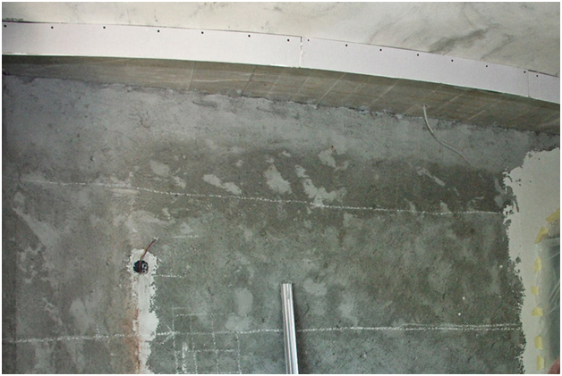 Изначально нужно проверить длину комнаты, после чего приступить к ширине. При выявлении явных перепадов в несколько сантиметров необходимо их зашпатлевать. Если штукатурка старая, ее снимают до самого перекрытия, после чего наносят грунтовку с глубоким проникновением.