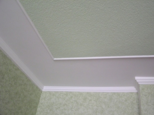 Рис.1. Декоративный короб на потолке. В качестве финишного покрытия потолка могут применяться обои, либо покраска. Здесь следует отметить достоинства натяжного потолка, что он одновременно является и декоративной отделкой, и технологией выравнивания. Однако недостаток натяжного потолка в том, что его очень сложно сделать своими руками.