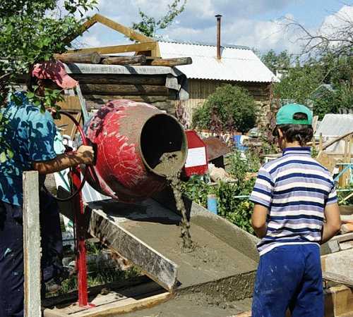При ручном способе замеса есть один важный момент, а именно – скорость укладки бетона. Даже при незначительной задержке, бетон в корыте может расслоиться (это выглядит как выступившая сверху вода), и потерять часть своих свойств. Поэтому важно быстро укладывать бетон в опалубку. Лучшим вариантом того, как приготовить бетон будет механический способ замеса при помощи бетономешалки. Плюсами подобного способа будет получение гарантированно однородной смеси и высокое качество полученного бетона.