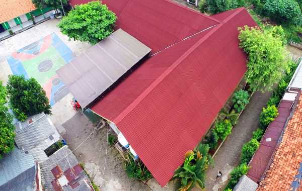 Маленький удельный вес кровельного покрытия дает возможность сделать стропильную систему более легкой, точно также несущие стены и фундамент не потребуют увеличения прочности, как в случае с глиняной черепицей, которая весит в несколько раз больше металлочерепицы.