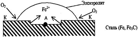 молекул кислорода, растворенного в воде, в случае атмосферной коррозии: