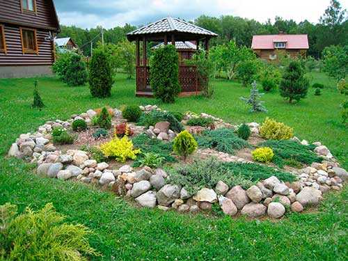 Можно устроить рокарий или каменистый садик (альпийская горка). В каменистом садике высаживают эффектные вечнозеленые растения – рододендрон, самшит, можжевеловые. Так же хорошо подойдут растения с сильной корневой системой – это ирисы сибирские, хосты. Не обойтись при устройства рокария без почвопокровных – живучки, бадана, арабиса. При уходе за своим рокарием не увлекайтесь чрезмерным увлажнением. Не следует стремиться к широкому ассортименту растений. Подберите несколько видов, подходящих к вашему климату, не требующих особого ухода весь сезон.