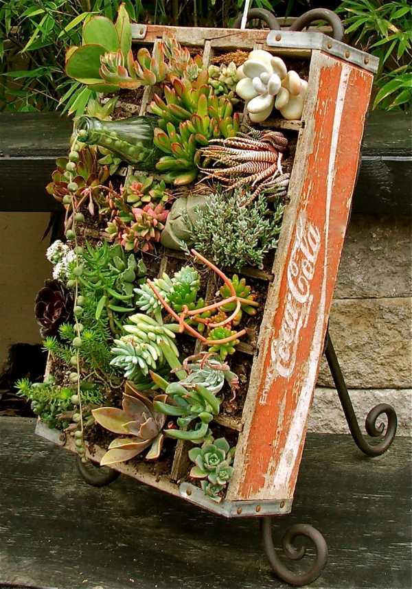 Интересным и оригинальным украшением для вашего участка может послужить передвижная цветочница. Это керамические горшки, деревянные или пластиковые контейнеры. Их легко передвигать и создавать композиции из растений с разными требованиями к почве и влажности. Бывают подвижные цветочницы на колесах или полозьях. Промежутки между горшками заполняют почвой или керамзитом, украшают корягами, мхом, почвопокровными растениями.