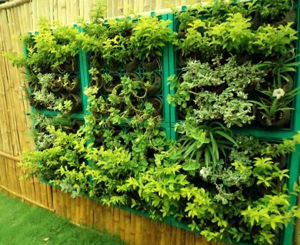 Если говорить об универсальных вариантах, которые подойдут для всех видов вертикальных цветников, не следует забывать о пластиковых бутылках. Здесь их практичность будет наиболее востребована. Во-первых, они очень легкие и небольшие, поэтому могут закрепляться практически на любой опоре. Во-вторых, из них можно создать емкость любой конфигурации, вырезав отверстие или отрезав ненужную часть. Если оставить только нижнюю половину, можно вставить такие горшки в специально подготовленную шпалеру.