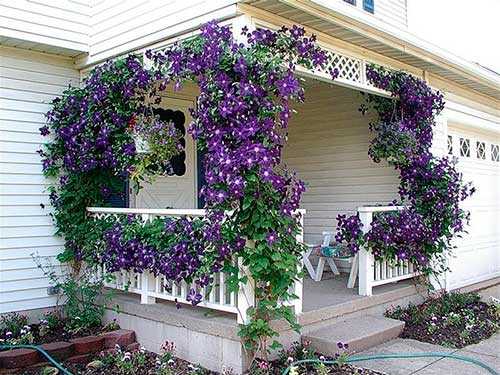 Цветами можно украсить фасад возле дома или беседку, а так - же укрыть малопривлекательные постройки. Для этих целей высаживают плетистые растения- разноцветные клематисы, вьющиеся розы, душистый горошек, ипомею. Для плетистых растений устанавливают различные опоры. Такой цветник называется вертикальным, он не занимает много места, но привносит на ваш участок удивительную красоту.