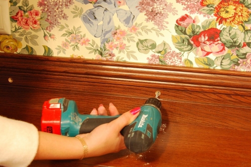 Перед монтажом деревянного плинтуса на нем необходимо вырезать небольшие углубления под названием потаи, что необходимы для утапливания в них шляпок от саморезов или металлических дюбельных гвоздей. Если не сделать потаи, то шляпки будут выходить за плоскость плинтуса и торчать, мешая нанесению шпаклевки. Вы можете сделать потай сверлом с диаметром, что немного больше диаметра шляпки и такой же глубины.